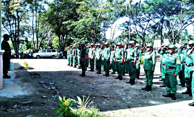 Demi melatih kedisiplinan Linmas, Sertu Arifin Lampow Babinsa Koramil 1303-07/Dumoga memberikan pelatihan PBB kepada Linmas Se-Kecamatan Dumoga Timur yang berlangsung di Kantor Kecamatan Dumoga Timur, Senin (28/01/2019) kemarin.