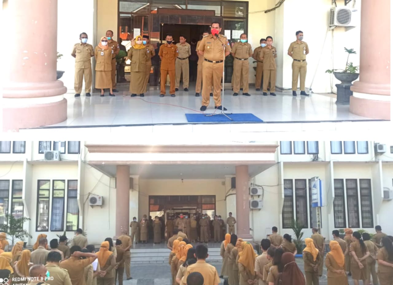 Apel diikuti oleh seluruh pejabat eselon 2, 3, 4 staf dan honorer.