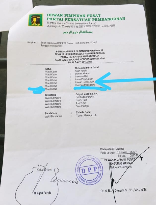 Status Lumali, lanjut sumber, juga bisa dilihat pada Surat Keputusan DPP Hanura tentang susunan pengurus DPC Partai Hanura Bolsel masa bakti 2016-2021.