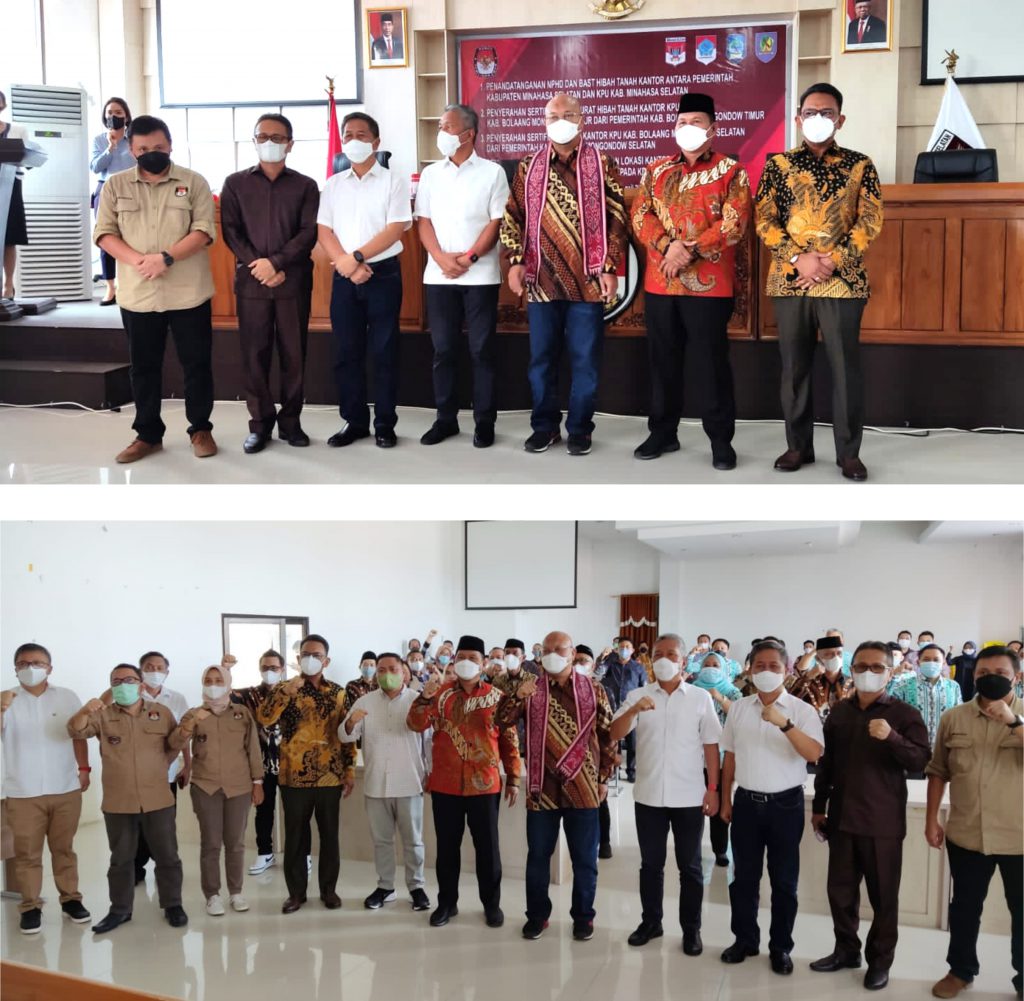 “Kami sangat berterima kasih kepada 4 daerah yang hari ini resmi menyerahkan sertifikat tanah guna pembangunan kantor KPU di Minsel, Boltim, Bolsel dan Bolmong,” ujarnya.