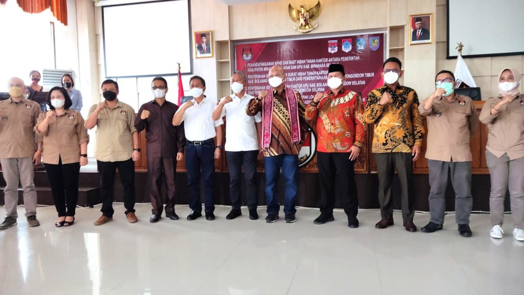Sertifikat dan surat hibah tersebut diserahkan langsung oleh Bupati Boltim, yang diwakili oleh Asisten Bidang Pemerintahan dan Kesra Priyamos SH, dan diterima langsung oleh Ketua KPU RI Ilham Saputra, bertempat di Kantor Bupati Minahasa Selatan (Minsel), Sabtu (9/04/2022).