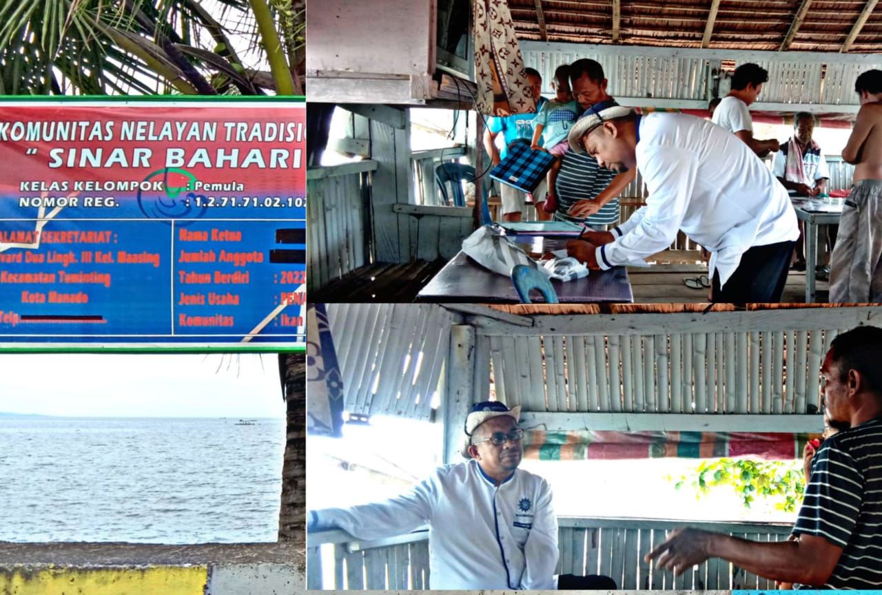 MANADO, LensaSulut.com – Program Manager MDMC, Fery eL Shirinja, menemui sejumlah nelayan di Pantai Boulevard 2 Kelurahan Maasing Lingkungan III, Kota Manado, Jumat (30/9/2022).
