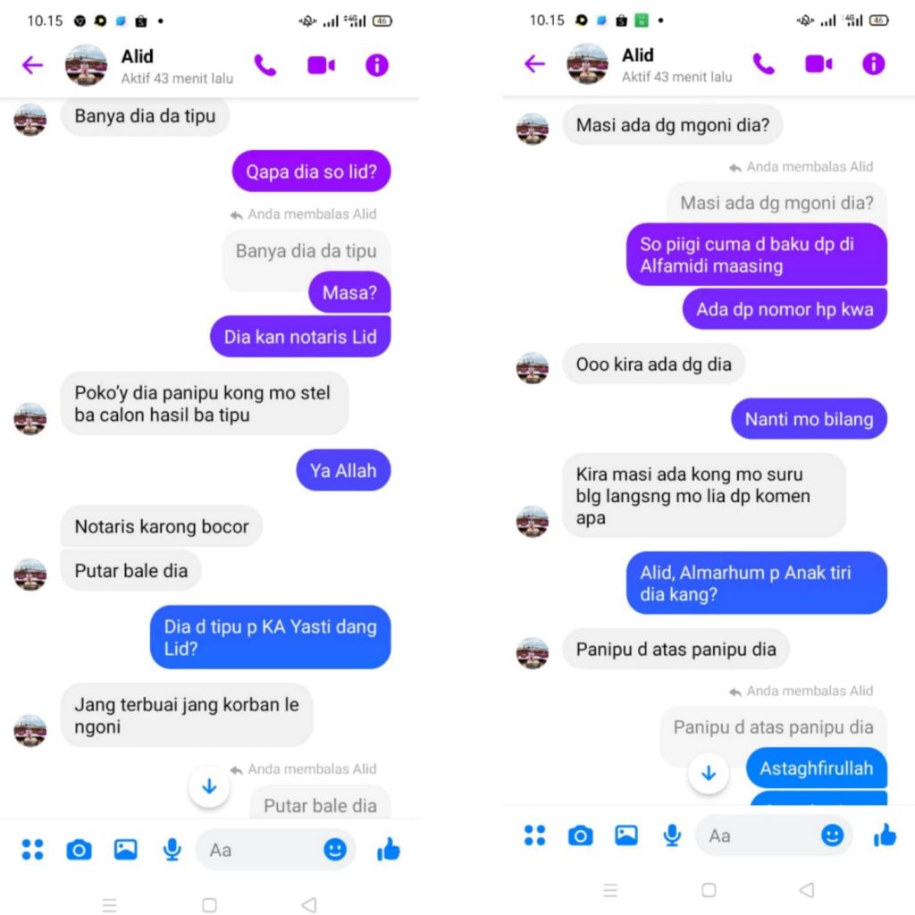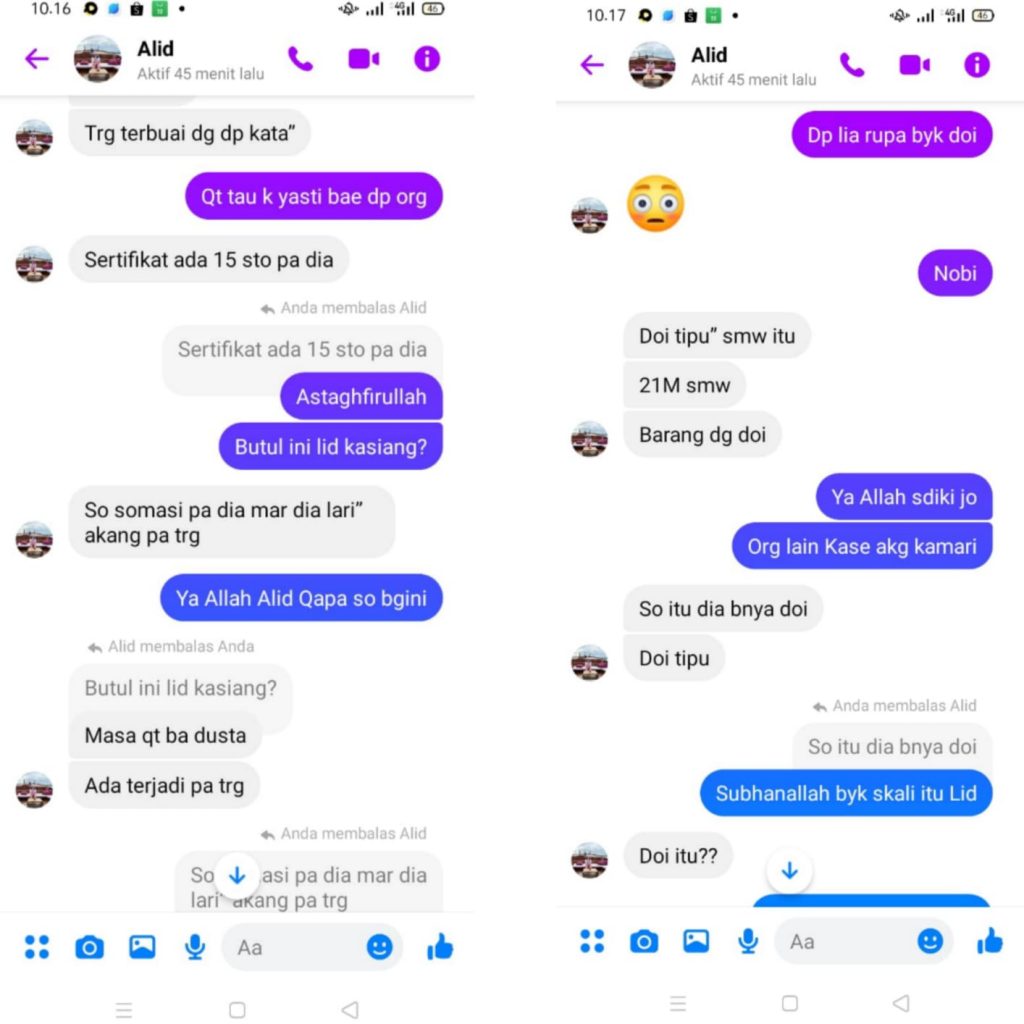 Bahkan pada chattingan tersebut kepada seseorang, Alid menyebutkan agar jangan memilih Putri untuk pilihan calon anggota DPD karena telah melakukan penipuan uang sebesar 21 milyar.