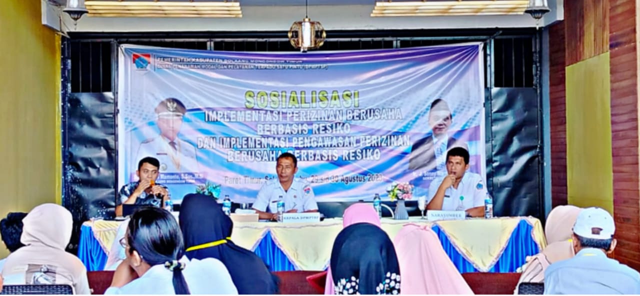 TUTUYAN, LensaSulut.com – Dinas Penanaman Modal dan Pelayanan Terpadu Satu Pintu (DPMPTSP) Kabupaten Bolaang Mongondow Timur (Boltim), menggelar Sosialisasi implementasi perizinan berusaha berbasis resiko.