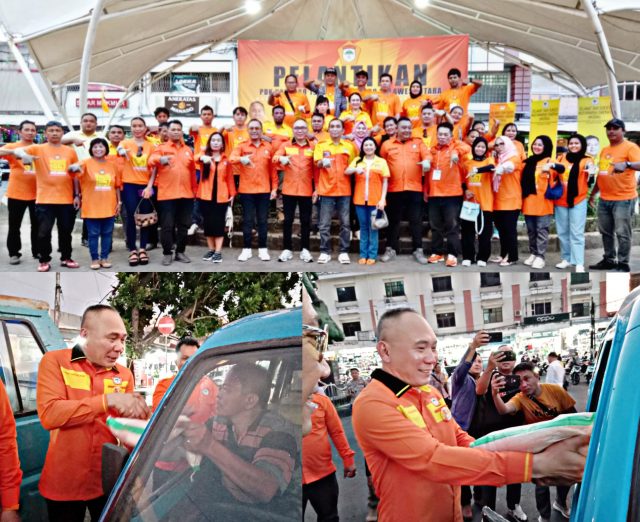 Yang tak kalah menghebohkan, usai melantik Oktavianus Hardi Paparang bersama pengurus lainnya, JPM didampingi pengurus Kosgoro 57 Sulut, berkeliling pusat kota Pasar 45 Manado untuk menyambangi membagi-bagikan beras kepada para sopir angkot berbagai trayek.