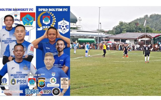 KOTABUNAN, LensaSulut.com — Suasana Lapangan Bogani Kotabunan, Senin (6/10/2025), tampak berbeda dari biasanya. Sebelum memasuki putaran kedua 18 besar Turnamen Bupati Cup 2025, panitia menggelar laga eksebisi seru yang mempertemukan dua tim istimewa. Boltim Bangkit FC dari pemda melawan DPRD Boltim FC.
