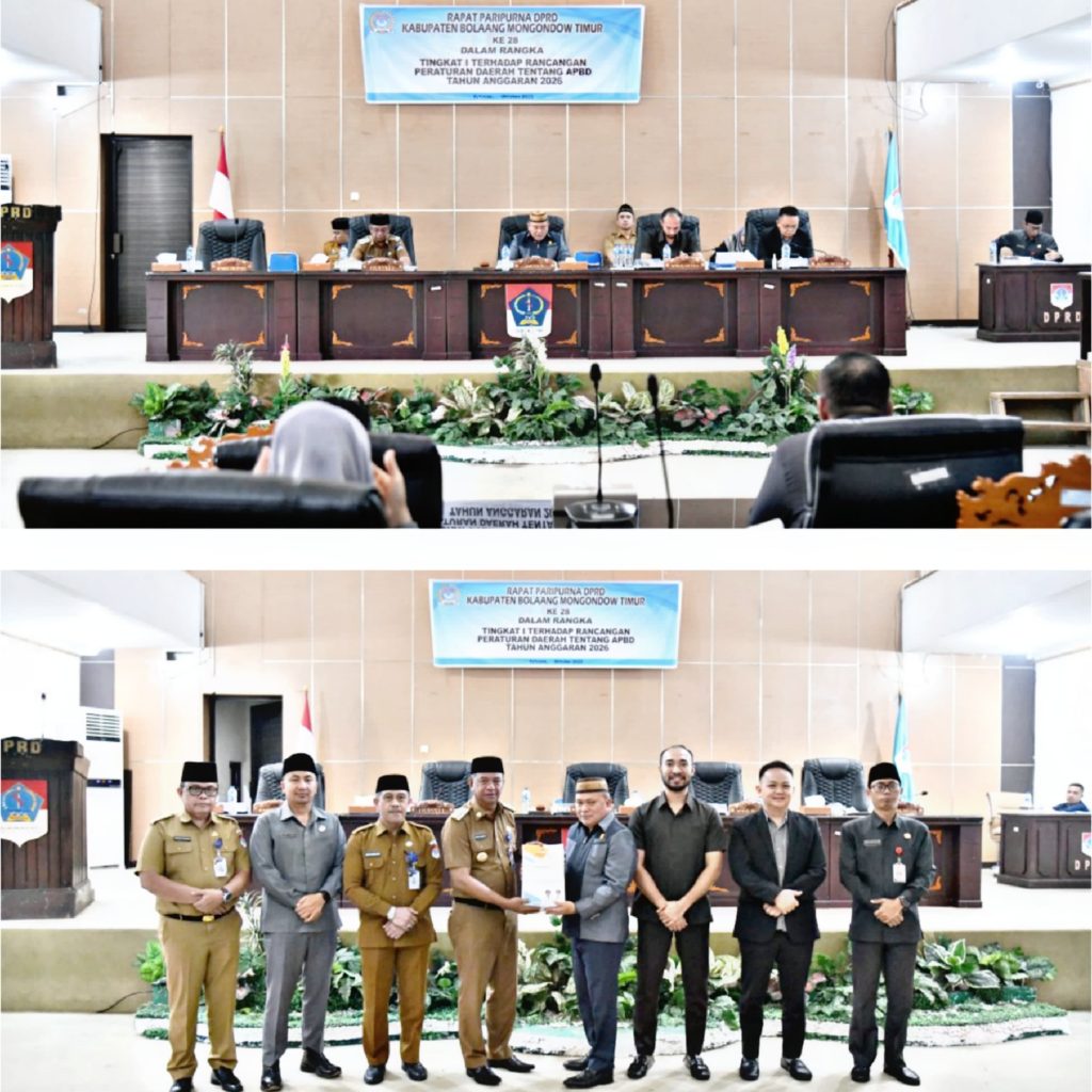 TUTUYAN, LensaSulut.com – Bupati Bolaang Mongondow Timur (Boltim) Oskar Manoppo, S.E., M.M., menghadiri Rapat Paripurna DPRD Kabupaten Boltim dalam rangka Pembahasan Tingkat I terhadap Rancangan Peraturan Daerah (Ranperda) tentang Anggaran Pendapatan dan Belanja Daerah (APBD) Tahun Anggaran 2026.