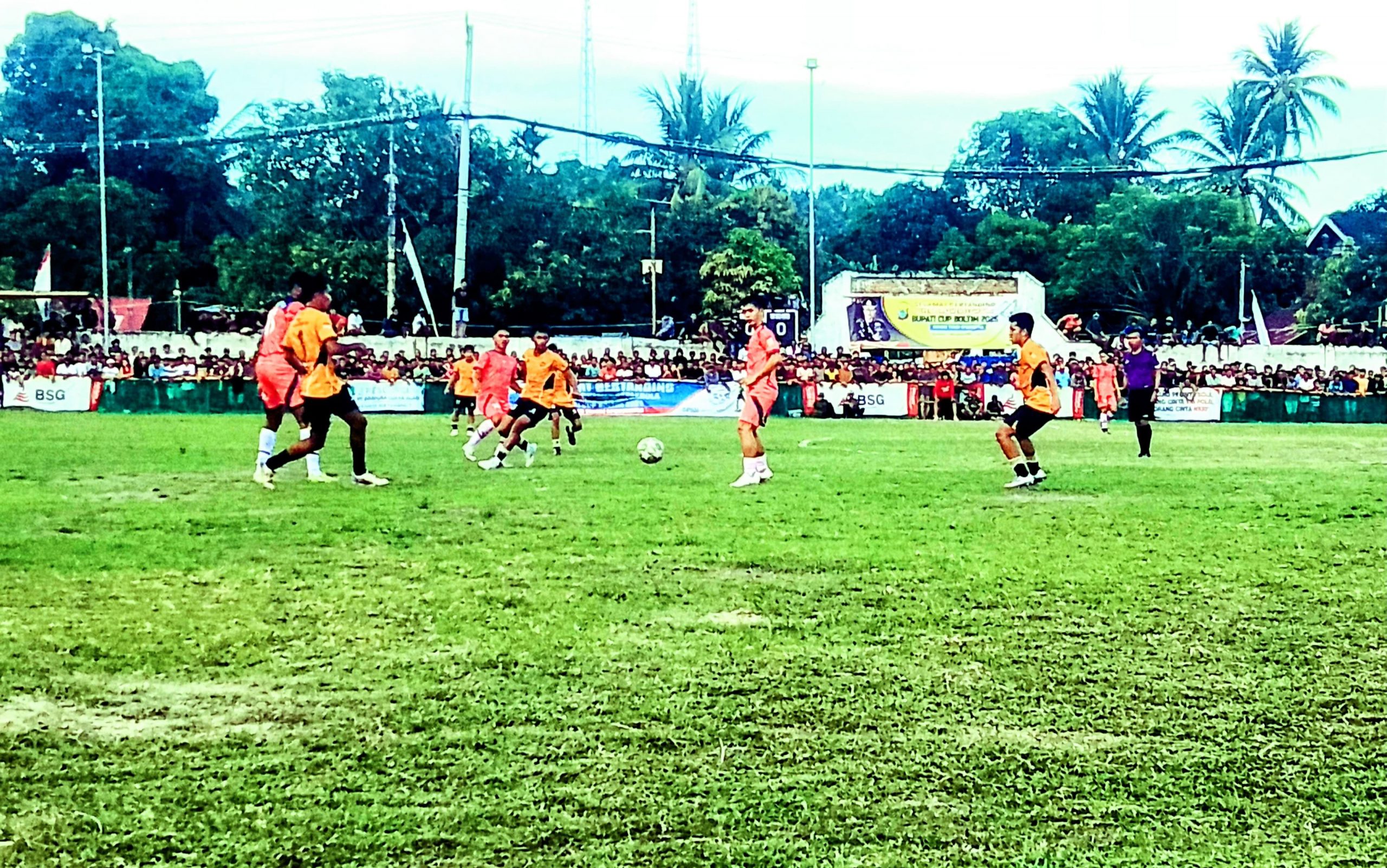 KOTABUNAN, Lensasulut.com – Laga penuh tensi tinggi kembali tersaji di Lapangan Bogani, Kotabunan, dalam lanjutan Turnamen sepak bola Bupati Cup 2025. Sabtu (18/10/2025).