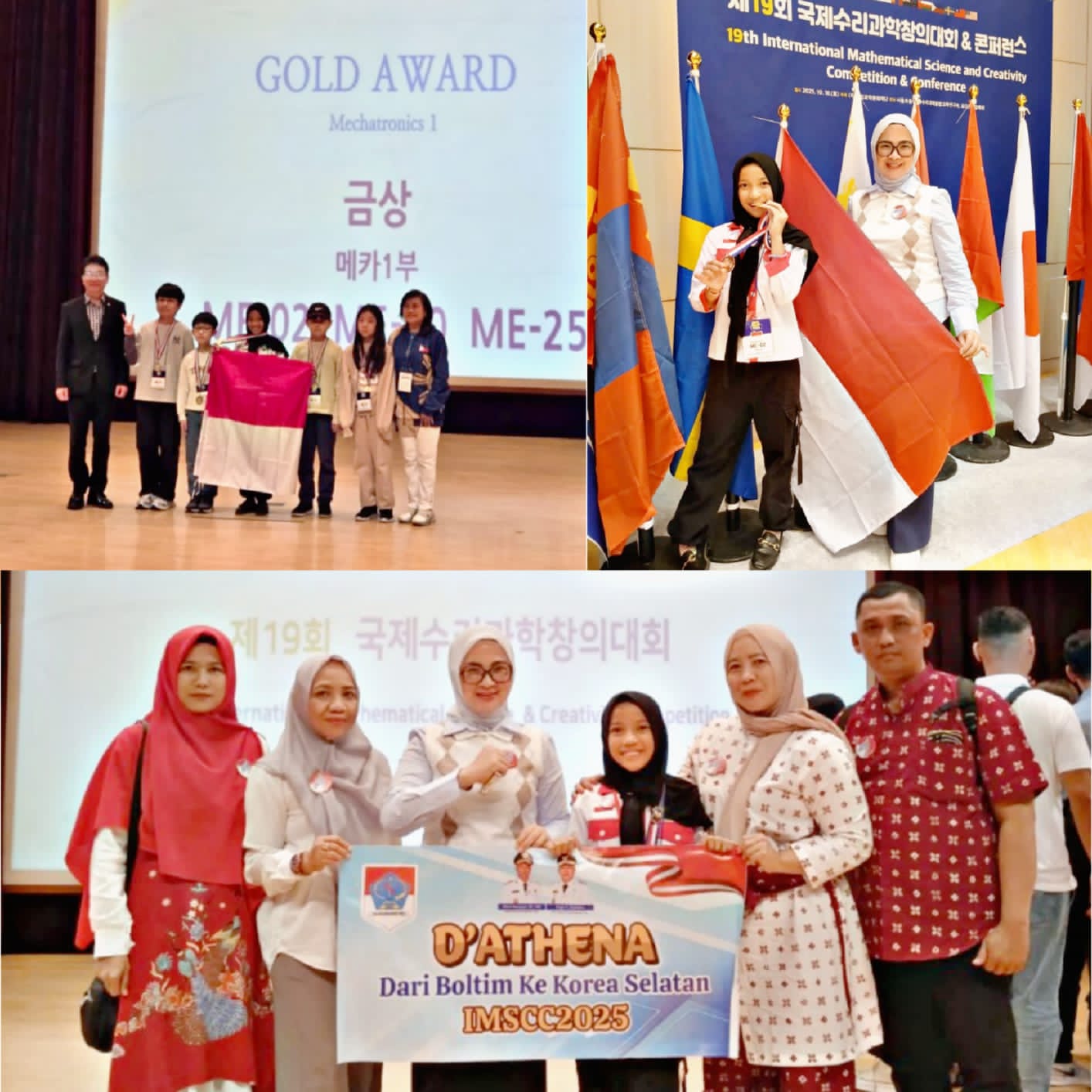 KOREA SELATAN, Lensasulut.com – Siswa SDN 2, Buyat 2, Kecamatan Kotabunan, Kabupaten Bolaang Mongondow Timur (Boltim). Dewi Athena Tri Manjadda, berhasil mengharumkan nama Indonesia dengan meraih medali emas kategori Mekatronika I dalam ajang International Mathematical Science Creativity Competition (IMSCC) yang digelar di Suwon, Korea Selatan, Sabtu (18/10/2025).