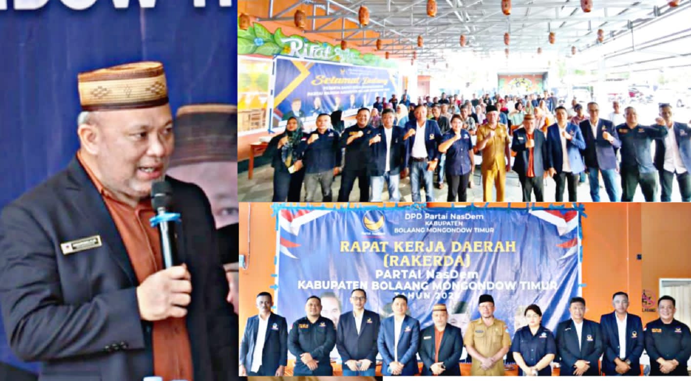 BOLTIM, LensaSulut.com – Dewan Pimpinan Daerah (DPD) Partai Nasional Demokrat (NasDem) Kabupaten Bolaang Mongondow Timur (Boltim) menggelar Rapat Kerja Daerah (Rakerda) di Cafe & Resto Tanjung Bubuan, Desa Buyat I, Kecamatan Kotabunan, Selasa (23/12/2025).