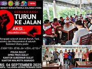 MANADO, LensaSulut.com - Rencana aksi demonstrasi massa buruh, tani, mahasiswa, dan masyarakat yang sedianya digelar pada Kamis (4/9/2025) di Kantor Gubernur Sulawesi...
