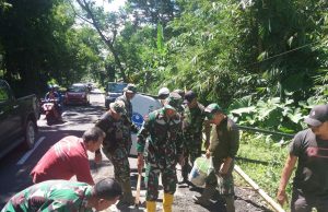 Kerap Makan Korban, Koramil Kauditan Perbaiki Jalan Ini