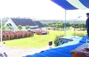 TUTUYAN lensasulut.com - Bupati Bolaang Mongondow Timur Sehan Landjar SH menjadi inspektur upacara dalam rangka peringatan Hari Guru Nasional (HGN), Senin (26/11).
