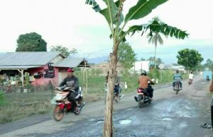 Di Bolmong Jalan Rusak Ditanami Pohon Pisang, Simak Alasannya.