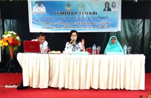 MANADO lensasulut.com - Pembina Utama Majelis Ta'lim Fathona, Prof Paula Julyeta Lumentut Runtuwene yang juga Ketua TP-PKK Kota Manado, memberikan materi pada seminar yang...