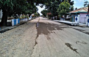 Pelaksana Proyek Jalan Desa Kobar Mulai Lakukan Penyiraman.