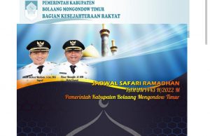 TUTUYAN, LensaSulut.com - Pemerintah Kabupaten Bolaang Mongondow Timur (Boltim) agendakan Safari Ramadhan atau Tarwih keliling selama Bulan Suci Ramadhan 1443 Hijriah di...